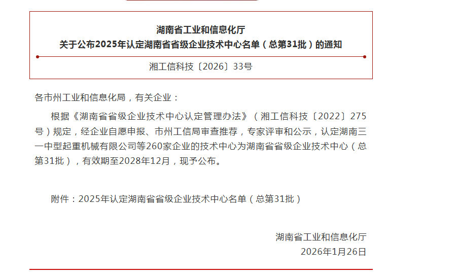 近日,湖南省工业和信息化厅正式公布2025年度湖南省省级企业技...